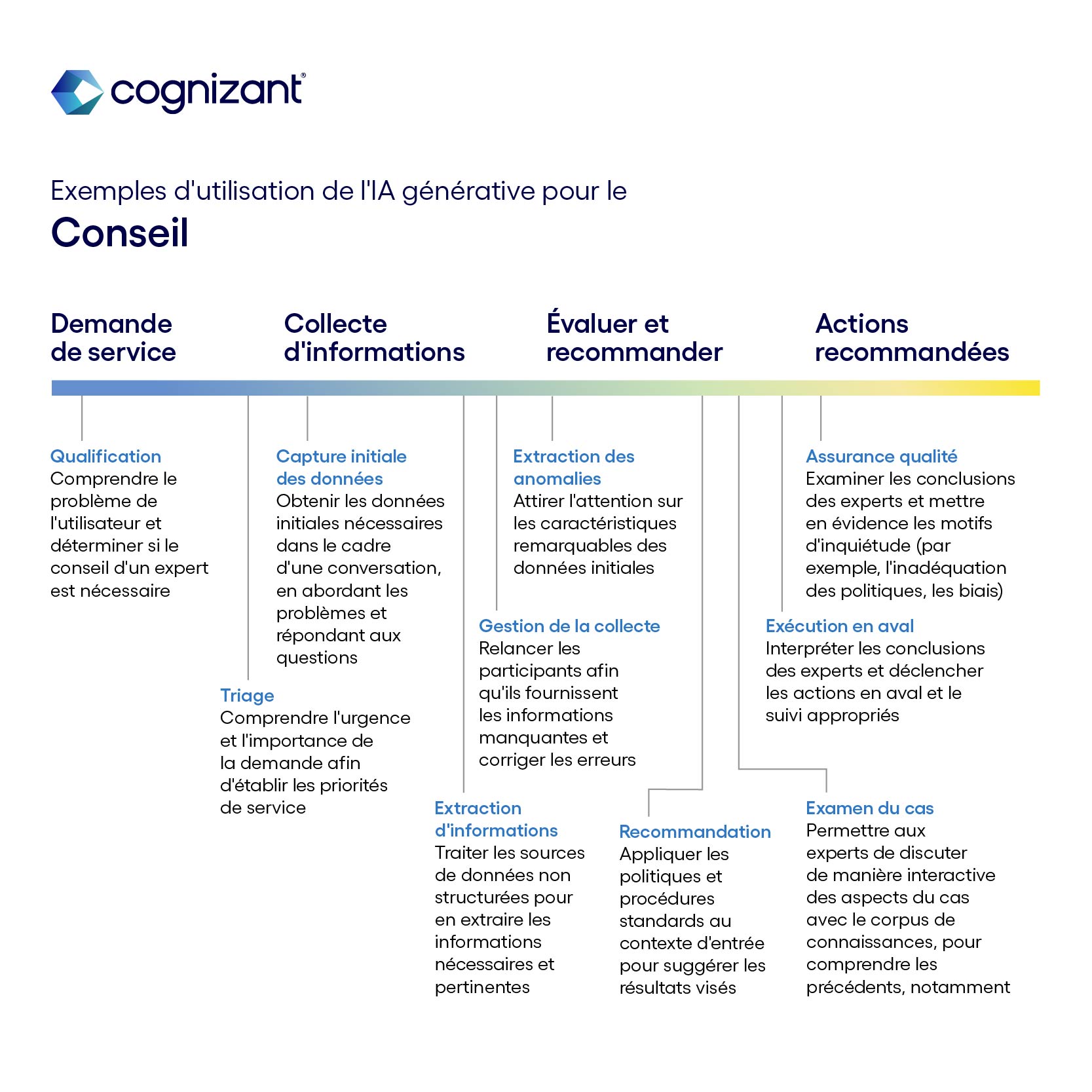 Aujourd'hui, de nombreuses entreprises intègrent de manière responsable l'IA générative dans les processus et les plateformes pour découvrir de nouveaux domaines d'opportunité et de croissance.
